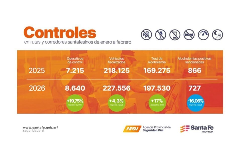Con el objetivo principal de garantizar la seguridad vial de quienes transitan por rutas y corredores santafesinos, la Agencia Provincial de Seguridad Vial (APSV) en coordinación con la Guardia Provincial, intensificó sus operativos de control durante el primer trimestre de 2026.